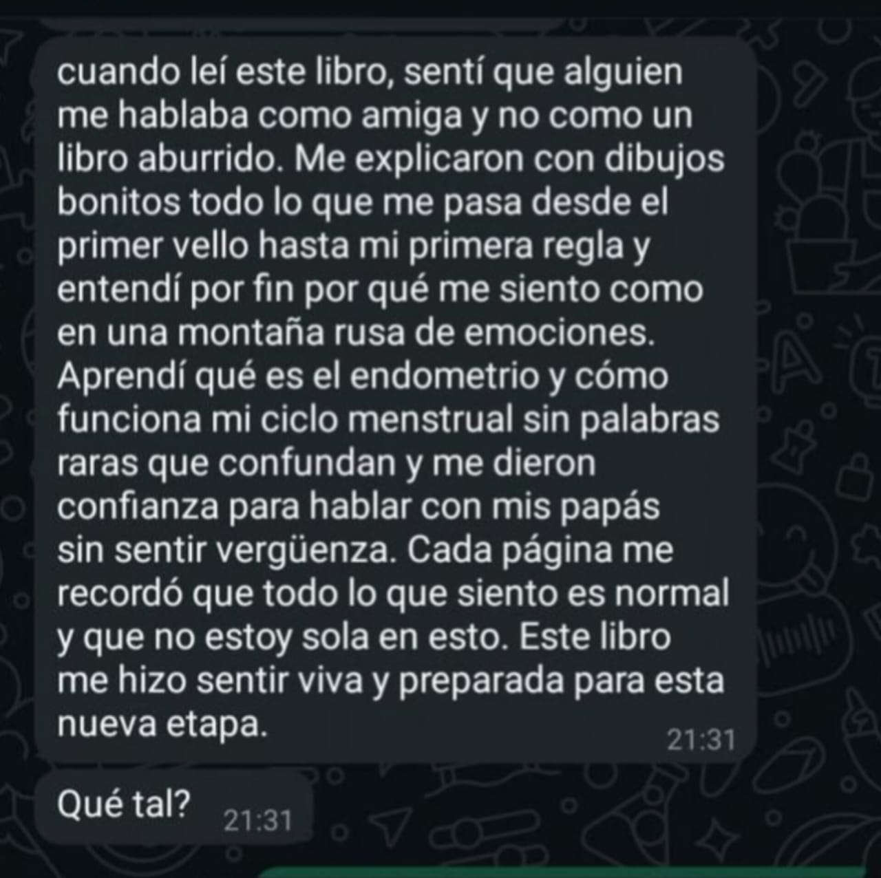Una guía bellamente ilustrada, emocionalmente cercana y basada en experiencias reales, diseñada para que madres, padres o cuidadores puedan conversar con sus hijas sobre la menstruación desde el amor, la ciencia y la comprensión mutua.
